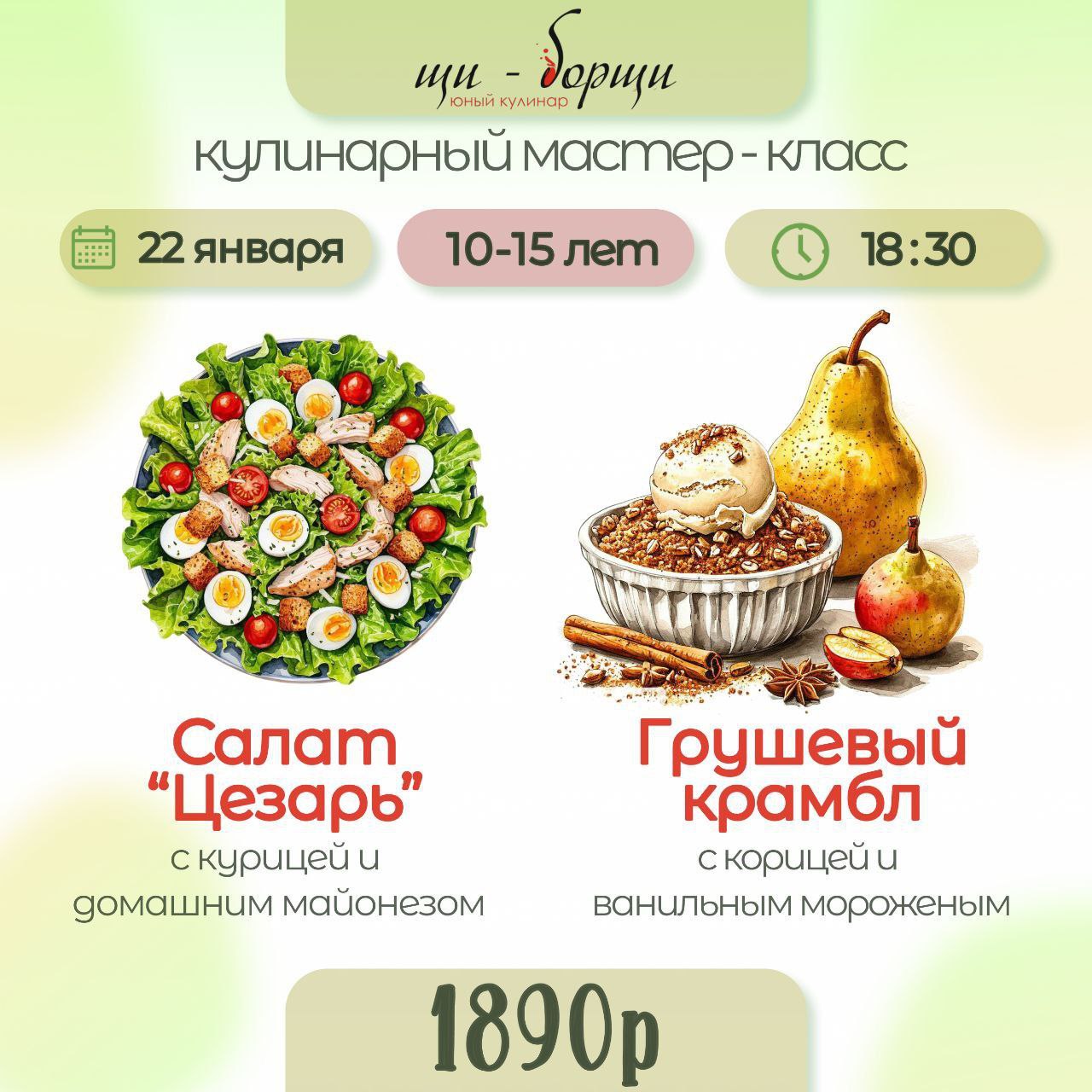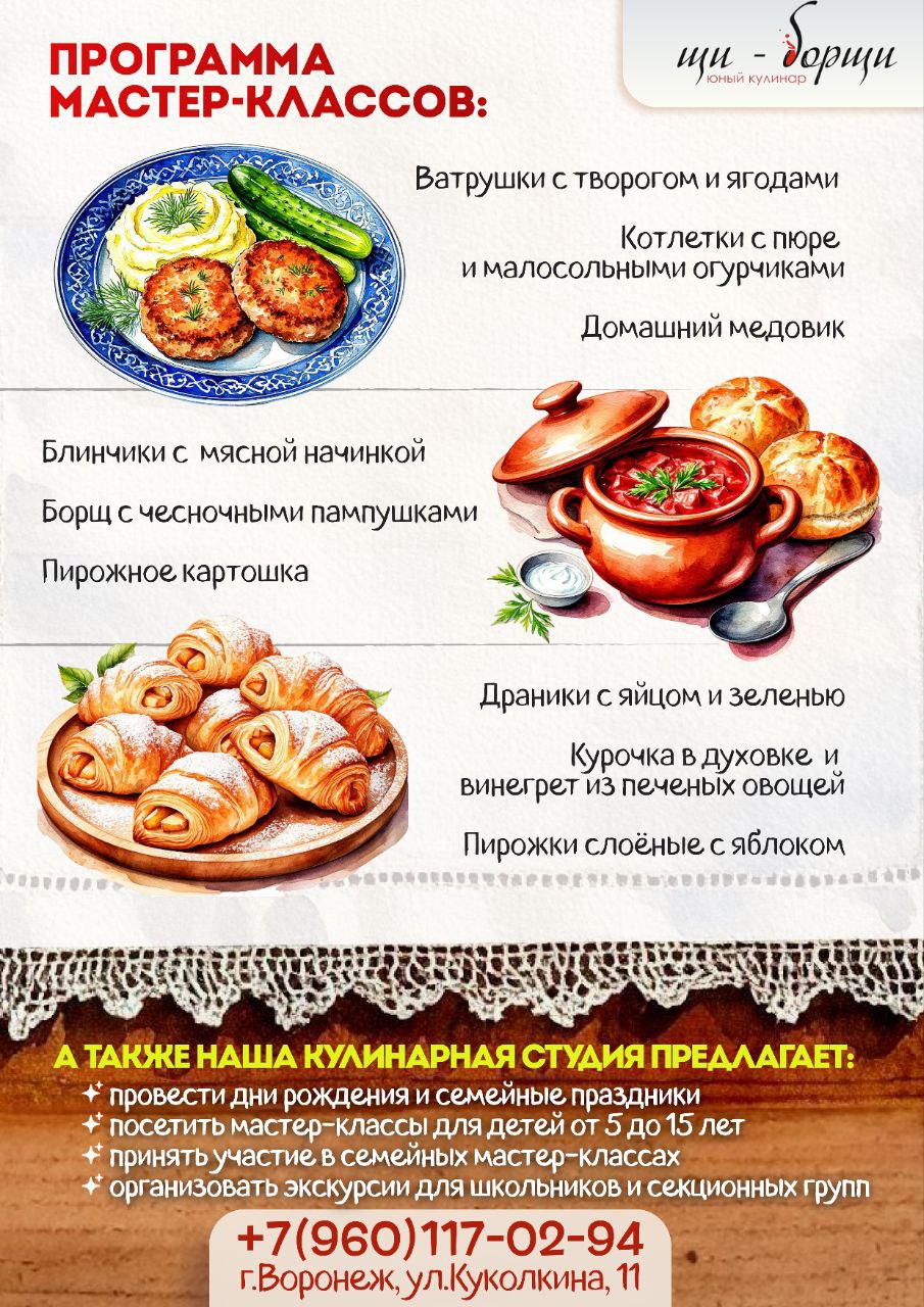 По завершению мероприятия рецепт каждого приготовленного блюда отправим Вам на почту.